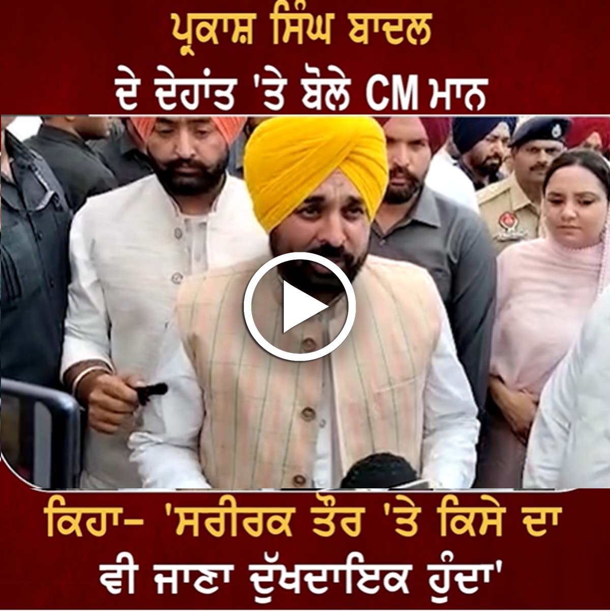 ਪੰਜਾਬ ਦੇ ਸਾਬਕਾ ਮੁੱਖ ਮੰਤਰੀ ਪ੍ਰਕਾਸ਼ ਸਿੰਘ ਬਾਦਲ ਦੇ ਦਿਹਾਂਤ ’ਤੇ ਮੁੱਖ ਮੰਤਰੀ ਭਗਵੰਤ ਮਾਨ ਨੇ ਕਿਹਾ ਹੈ ਕਿ ਭਾਵੇਂ ਉਨ੍ਹਾਂ ਦੇ ਬਾਦਲ ਨਾਲ ਵਿਚਾਰਕ ਮਤਭੇਦ ਰਹੇ ਹਨ ਪਰ ਸਰੀਰਕ ਤੌਰ ’ਤੇ ਇਸ ਦੁਨੀਆ ਨੂੰ ਛੱਡ ਕੇ ਜਾਣਾ ਹਮੇਸ਼ਾ ਸਾਰਿਆਂ ਲਈ ਦੁੱਖਦਾਈ ਹੁੰਦਾ ਹੈ। ਇਸ ਲਈ ਉਹ ਪਰਮਾਤਮਾ ਕੋਲ ਵਿਛੜੀ ਆਤਮਾ ਦੀ ਸ਼ਾਂਤੀ ਲਈ ਅਰਦਾਸ ਕਰਦੇ ਹਨ। ਉਨ੍ਹਾਂ ਕਿਹਾ ਕਿ ਬਾਦਲ 5 ਵਾਰ ਮੁੱਖ ਮੰਤਰੀ ਰਹੇ ਅਤੇ ਇਸ ਦੁਨੀਆ ਤੋਂ ਹੁਣ ਵਿਦਾ ਹੋਏ ਹਨ। ਇਸ ਲਈ ਸਾਨੂੰ ਸਾਰਿਆਂ ਨੂੰ ਮਿਲ ਕੇ ਉਨ੍ਹਾਂ ਦੇ ਪਰਿਵਾਰ ਲਈ ਵੀ ਅਰਦਾਸ ਕਰਨੀ ਚਾਹੀਦੀ ਹੈ।